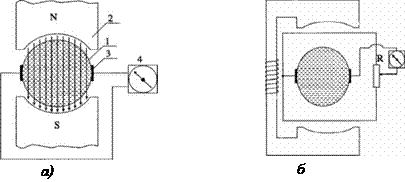 Рисунок 6.13 - Схема електромагнітного витратоміра а) – з постійним магнітним полем; б) – зі змінним магнітним полем.